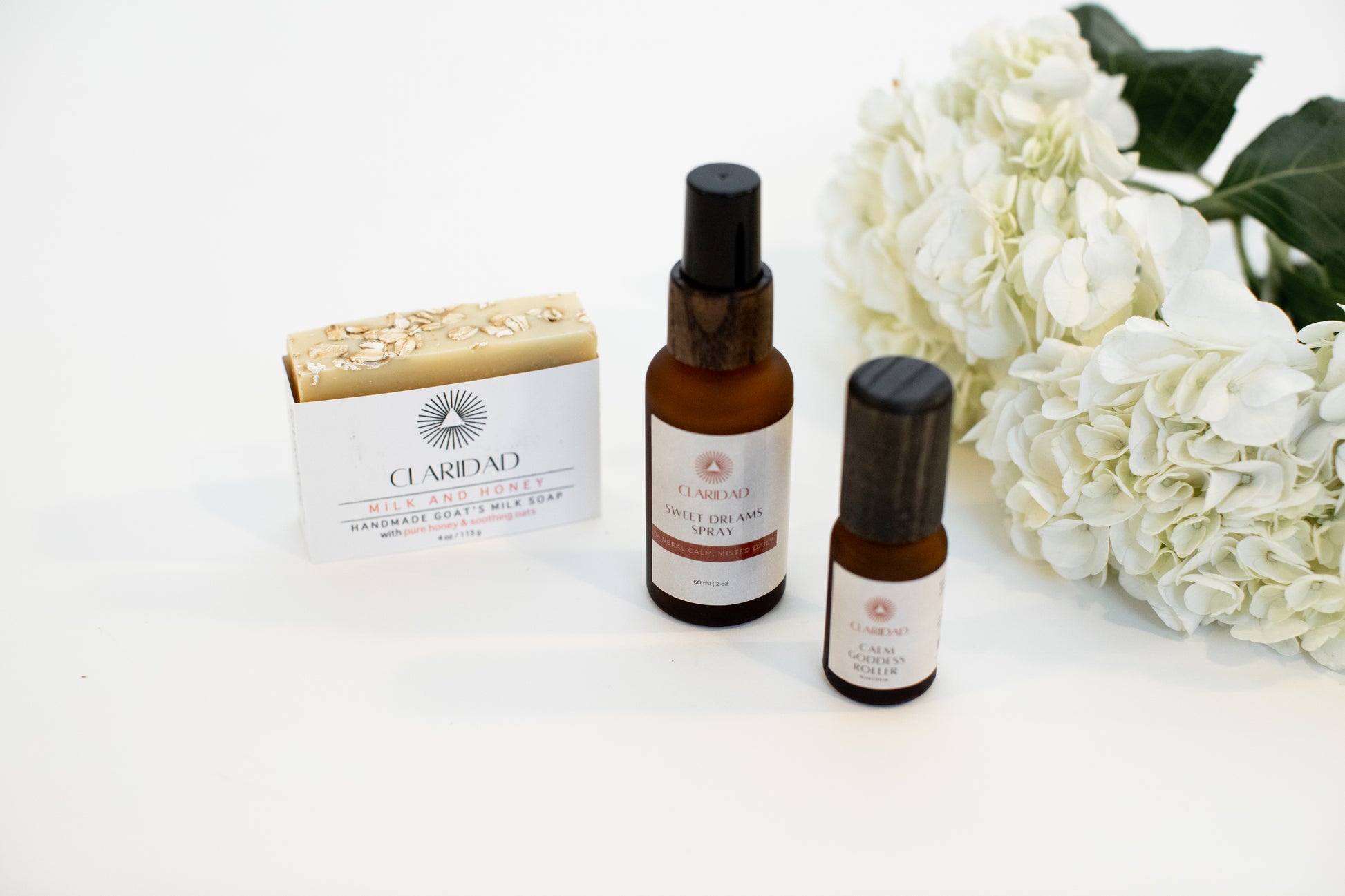 Crafted with fresh goat’s milk, honey, oats, and organic oils for radiant, hydrated skin. -